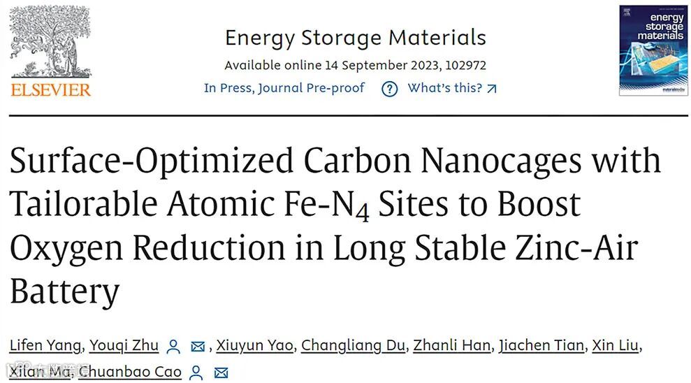 表面优化碳纳米笼负载可定制的Fe-N4位点促进长稳定锌-空气电池中的氧还原反应