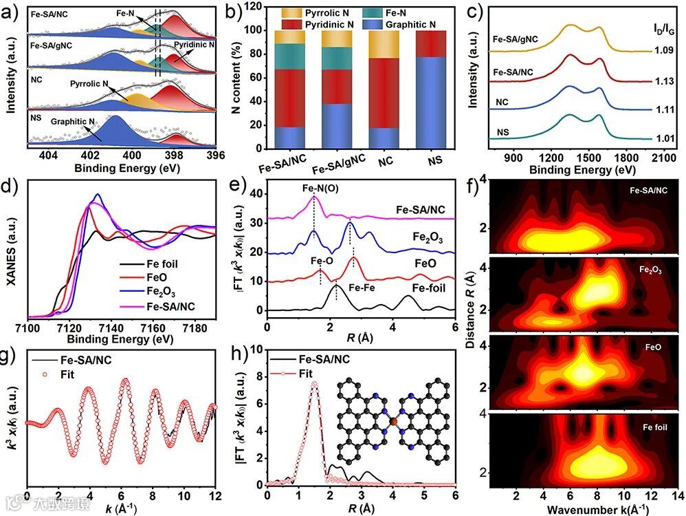 图2. Fe-SA/NC的化学组成和原子结构