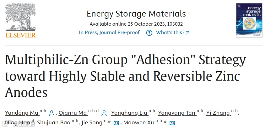 Ma, Y.; Ma, Q.; Liu, Y.; Tan, Y.; Zhang, Y.; Han, N.; Bao, S.; Song, J.; Xu, M., Energy Storage Materials 2023, 103032.