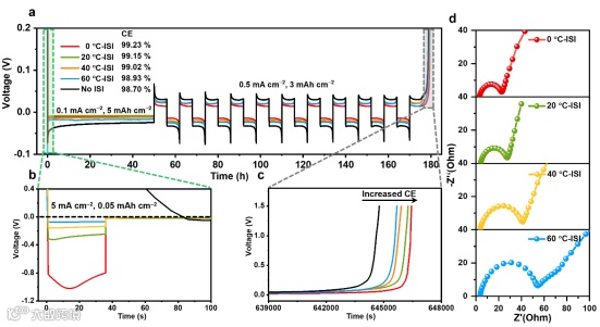 图 4 原位植晶对Li||Cu电池电化学性能的影响。