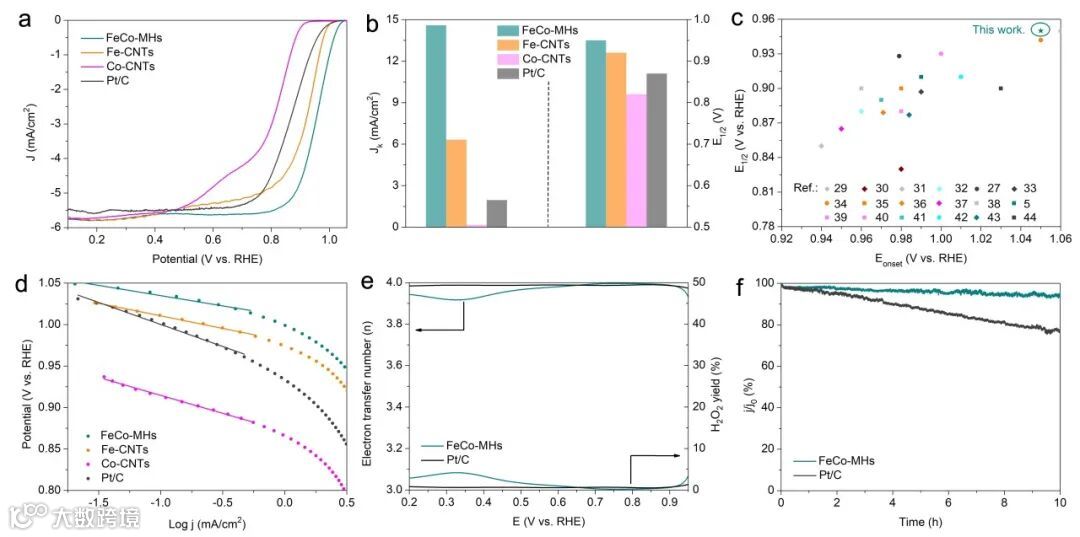 图3:FeCo-MHs催化剂的电化学ORR性能测试