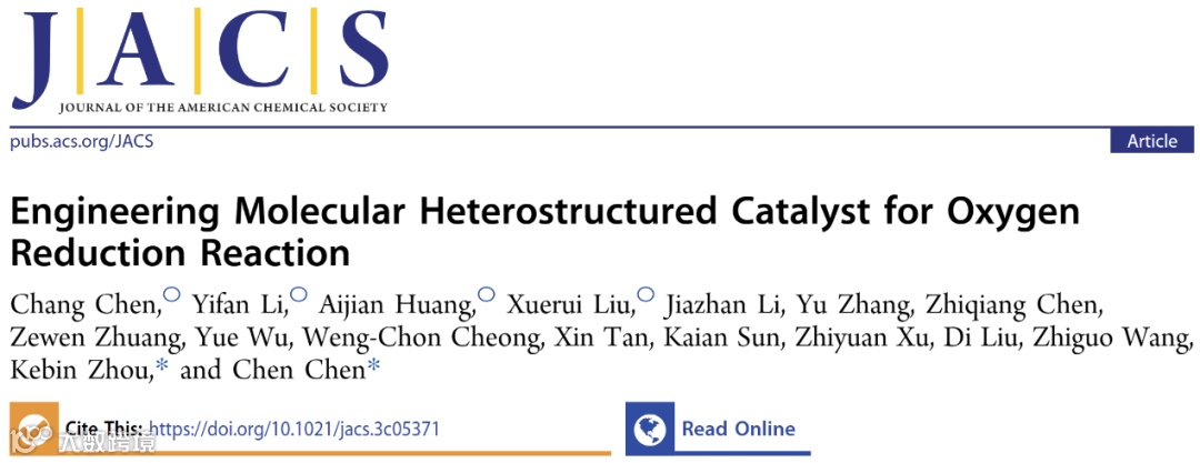 近日,来自清华大学的陈晨教授和中国科学院大学的周克斌教授在国际知名期刊JACS上发表题为“Engineering Molecular Heterostructured Catalyst for Oxygen Reduction Reaction”的文章。该工作使用两步特异性吸附策略,在无高温煅烧条件下,构筑了一种分子异质结构型的双原子FeCo催化剂(FeCo-MHs),为了排除AC-HAADF-STEM图像中“假”分子异质结构的存在,利用AC-HAADF-STEM原位转角8°的操作直接辨认了单个“真”FeCo分子异质结构。该FeCo-MHs催化剂取得了优异的ORR催化活性,并在阴离子交换膜燃料电池和锌空气电池中取得了出色的表现。实验结果和理论计算表明了FeCo分子异质结构的构筑调控了金属中心的磁矩,使得其性能在磁矩-活性火山曲线的顶端上得到进一步优化。