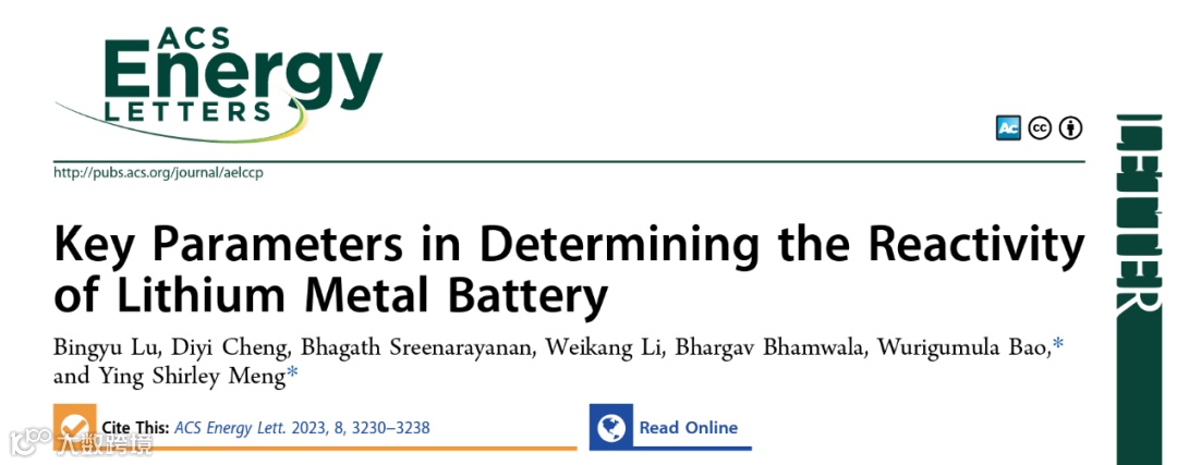 Bingyu Lu, Diyi Cheng, Bhagath Sreenarayanan, Weikang Li, Bhargav Bhamwala, Wurigumula Bao*, Ying Shirley Meng*, Key Parameters in Determining the Reactivity of Lithium Metal Battery, 2023, ACS Energy Lett.