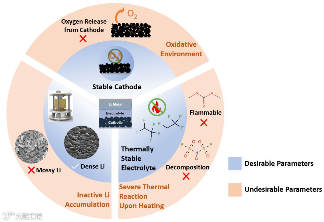 图7. 控制锂金属电池安全性的关键参数:内环表示锂金属负极的安全运行的所需条件,而外环表示未优化条件。