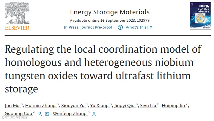 调节同源异质铌钨氧化物局部配位环境实现锂离子超快存储
