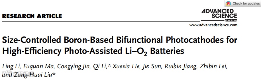 尺寸可控硼基双功能光电极实现高性能光辅助锂氧电池