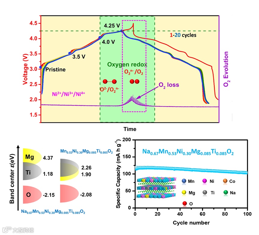 图1. Mg和Ti的共同作用使Ni30MgTi在4.0-4.25 V区间能够得到稳定的阴离子氧化还原反应。
