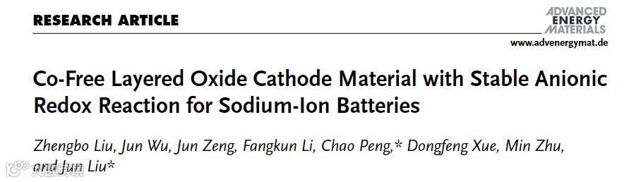 近日,来自华南理工大学的刘军教授与中国科学院深圳先进技术研究院薛冬峰课题组彭超副研究员合作,在国际知名期刊Advanced Energy Materials上发表题为“Co-Free Layered Oxide Cathode Material with Stable Anionic Redox Reaction for Sodium-Ion Batteries”的文章。该文章利用惰性元素Mg和Ti取代层状氧化物正极材料中的Co元素得到无钴P2-Na0.67Mn0.53Ni0.30Mg0.085Ti0.085O2 (Ni30MgTi) 正极材料,通过引入阴离子氧化还原反应提高比容量,同时通过提高工作电压使能量密度从325 Wh kg-1提升至410 Wh kg-1。此外,Ni30MgTi显示出良好的结构稳定性,在充电和放电过程中其体积变化仅为0.3%。且在高电压范围内没有发生氧的损失,这表明Ni30MgTi的阴离子氧化反应是稳定的。