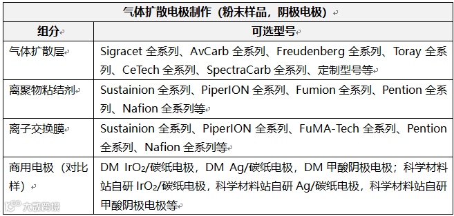 4.3 先进的测试材料,用户可任意选用当下最前沿的原材料,如制作阴极气体扩散电极
