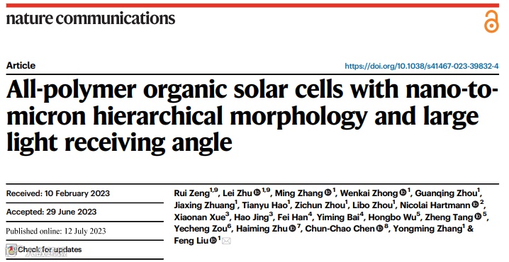 “All-polymer organic solar cells with nano-to-micron hierarchical morphology and large light receiving angle”