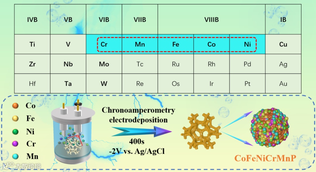 图1:无定形CoFeNiCrMnP/NF高熵化合物的合成示意图。