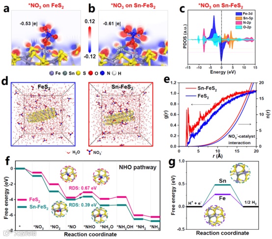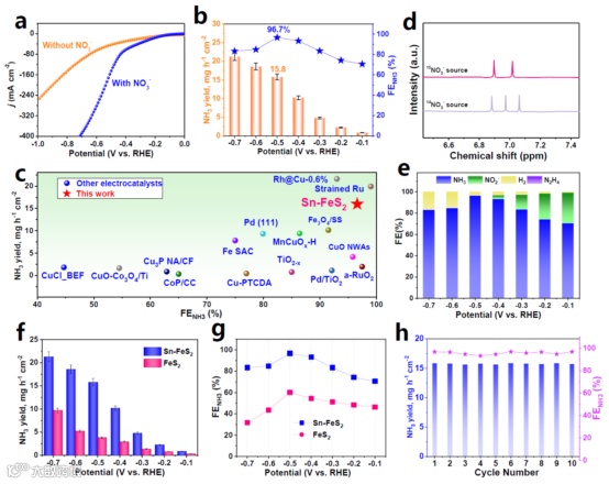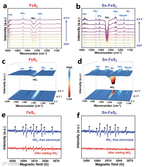 图5. 电化学原位光谱分析Sn-FeS2的NO3RR反应过程