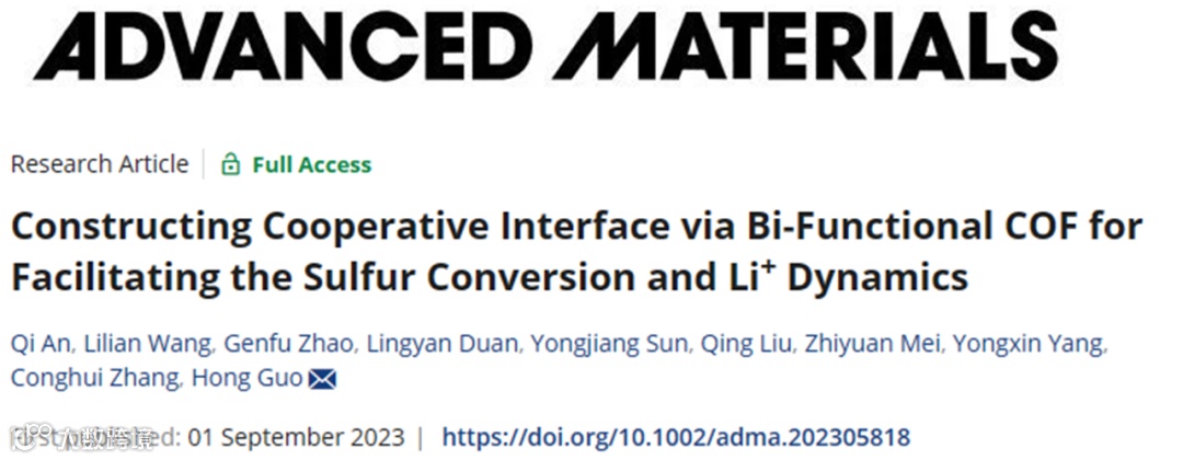 双功能COF构建协同界面促进硫转化和Li+动力学