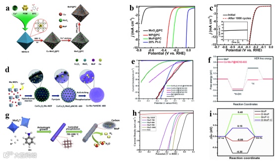 图3. Mo基MOF衍生碳化钼催化剂-异质结构筑