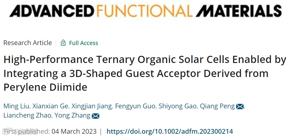 引入3D型苝酰亚胺类客体受体,实现高性能三元有机太阳电池