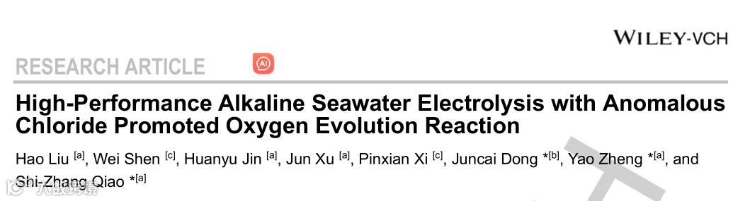 近日,来自阿德莱德大学的乔世璋院士、郑尧副教授课题组与中科院高能物理研究所董俊才副研究员合作,在国际知名期刊Angewandte Chemie International Edition上发表题为“High-Performance Alkaline Seawater Electrolysis with Anomalous Chloride Promoted Oxygen Evolution Reaction”的研究文章。本文探讨了一种创新的催化剂设计方法,利用氯离子(Cl-)在特定位置的吸附性,通过调控吸附过程引起材料结构的变化,从而影响催化性能。这项研究为未来高活性和高稳定性的海水基催化剂设计提供了全新思路,而将催化剂与工业级碱性电解槽结合使用,为未来实际海水电解提供了重要的参考价值。