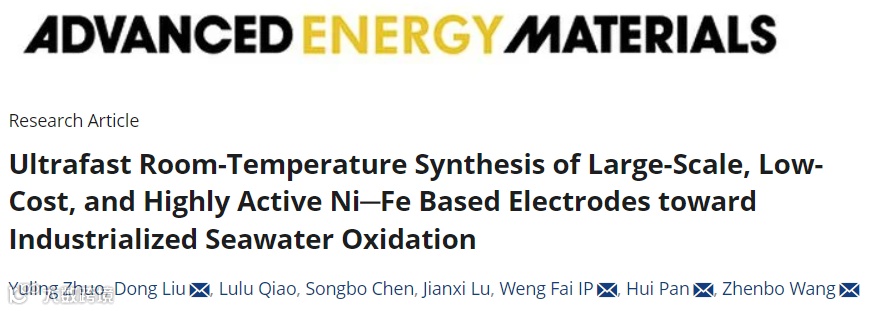 ”Ultrafast Room-Temperature Synthesis of Large-Scale, Low-Cost, and Highly Active Ni─Fe Based Electrodes toward Industrialized Seawater Oxidation”