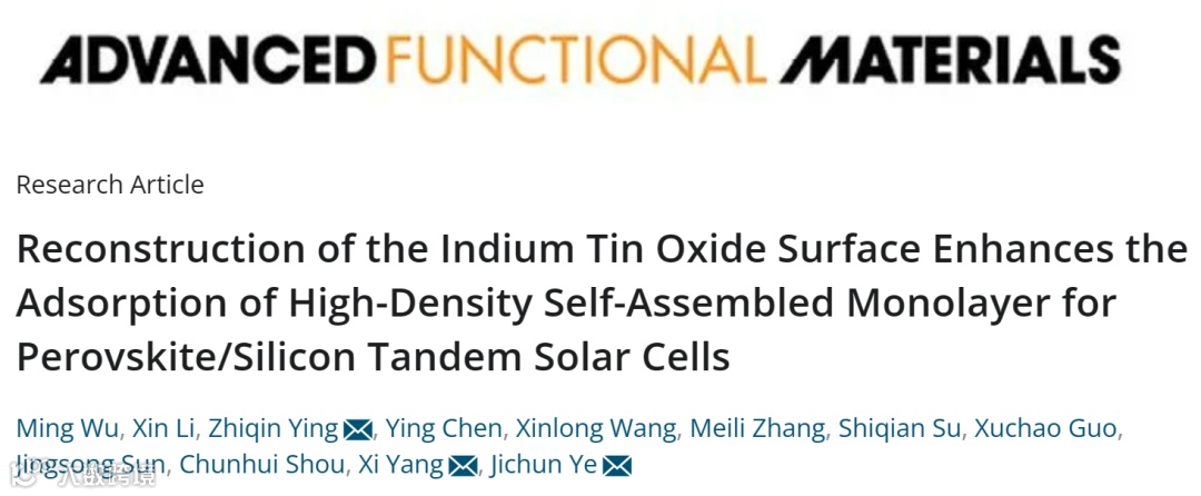 氧化铟锡的表面重构增强自组装单分子层的高密度吸附实现高效钙钛矿/硅叠层太阳能电池
