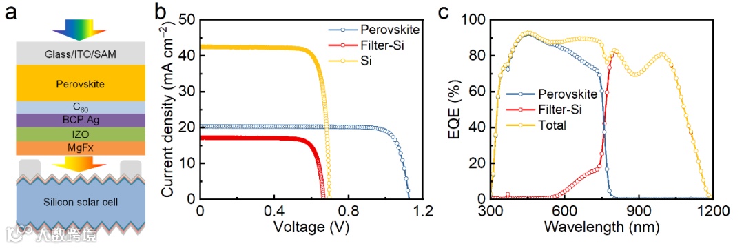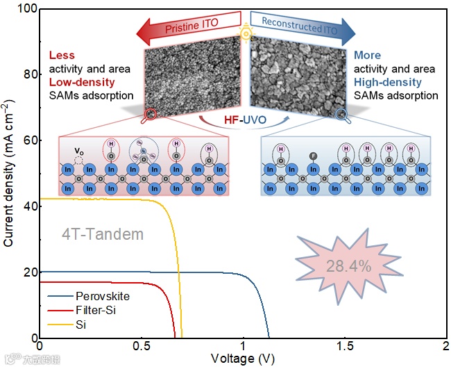 图6 表面重构的ITO在四端钙钛矿/硅叠层上的应用