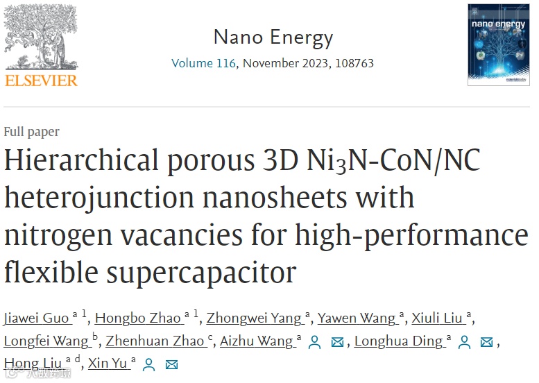 “Hierarchical porous 3D Ni3N-CoN/NC heterojunction nanosheets with nitrogen vacancies for high-performance flexible supercapacitor”