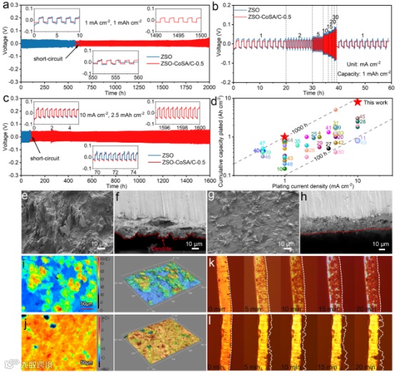 要点三:CoSA/C添加剂对锌沉积影响的实验验证