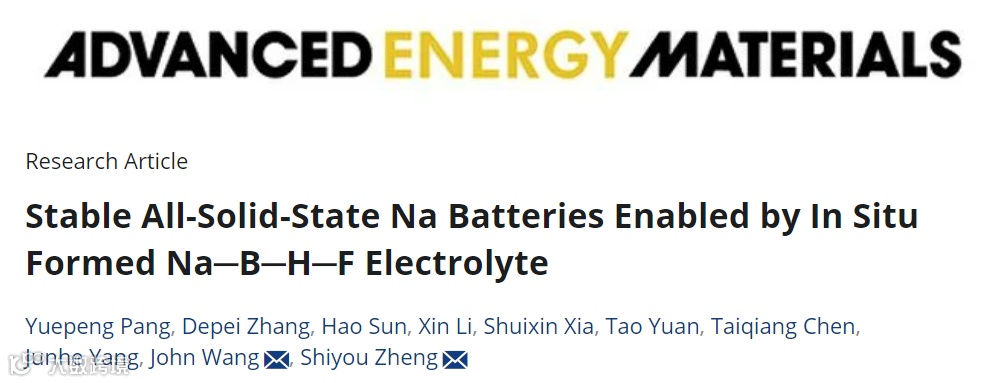 近日,来自上海理工大学的郑时有教授与新加坡国立大学的John Wang教授合作,在国际知名期刊Advanced Energy Materials上发表题为“Stable all-solid-state Na batteries enabled by in-situ formed Na-B-H-F electrolyte”的论文,提出通过氢化物与NaHF2之间的化学反应在氢化物固体电解质中原位引入氟元素,形成了NaF和氟代氢化物。富氟的氢化物基固体电解质拥有更高的电化学稳定性,能够显著提升全固态电池的循环稳定性。