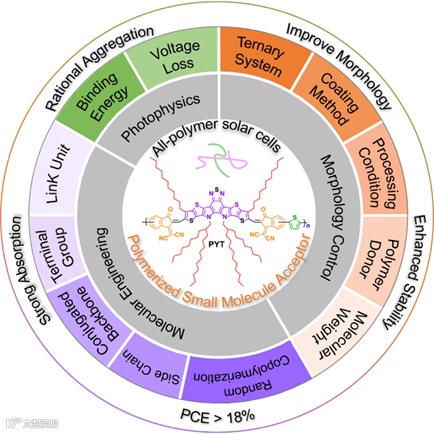 图1. 基于PSMA型受体材料的全聚合物太阳能电池的综述文章内容导图。