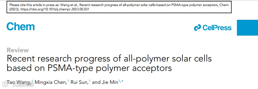 近日,来自武汉大学的闵杰教授受邀在国际知名期刊Chem上发表题为“Recent research progress of all-polymer solar cells based on PSMA-type polymer acceptors”的专题综述。