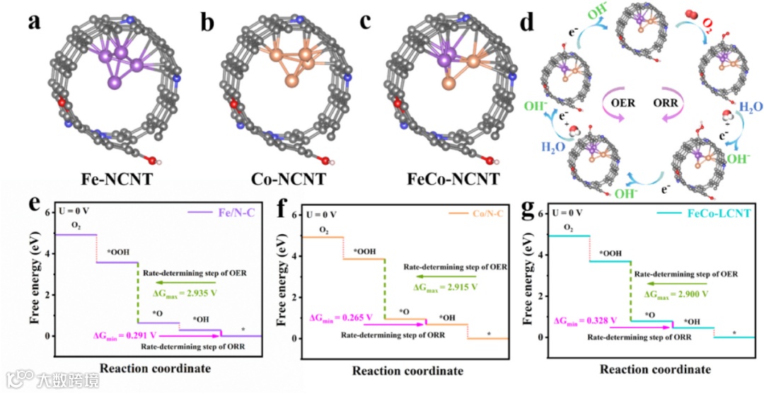要点三:实验研究和理论计算揭示了FeCo-LCNT的电催化机理