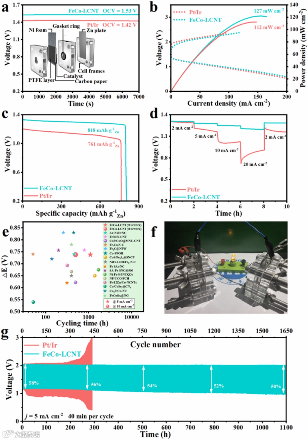 要点二:FeCo-LCNT具有ORR/OER电催化性能,助力超长循环寿命锌空气电池