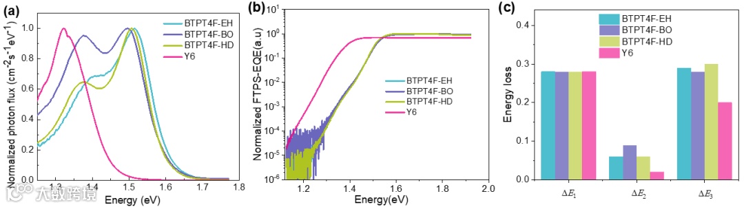 图4. 基于五环受体和七环受体Y6光伏器件的能量损失分析。