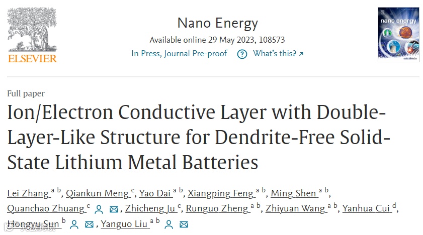 离子/电子双层导电界面结构实现无枝晶固态锂电池