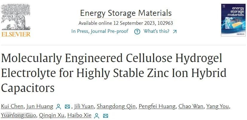 分子工程化纤维素水凝胶电解质助力高稳定锌离子电容器