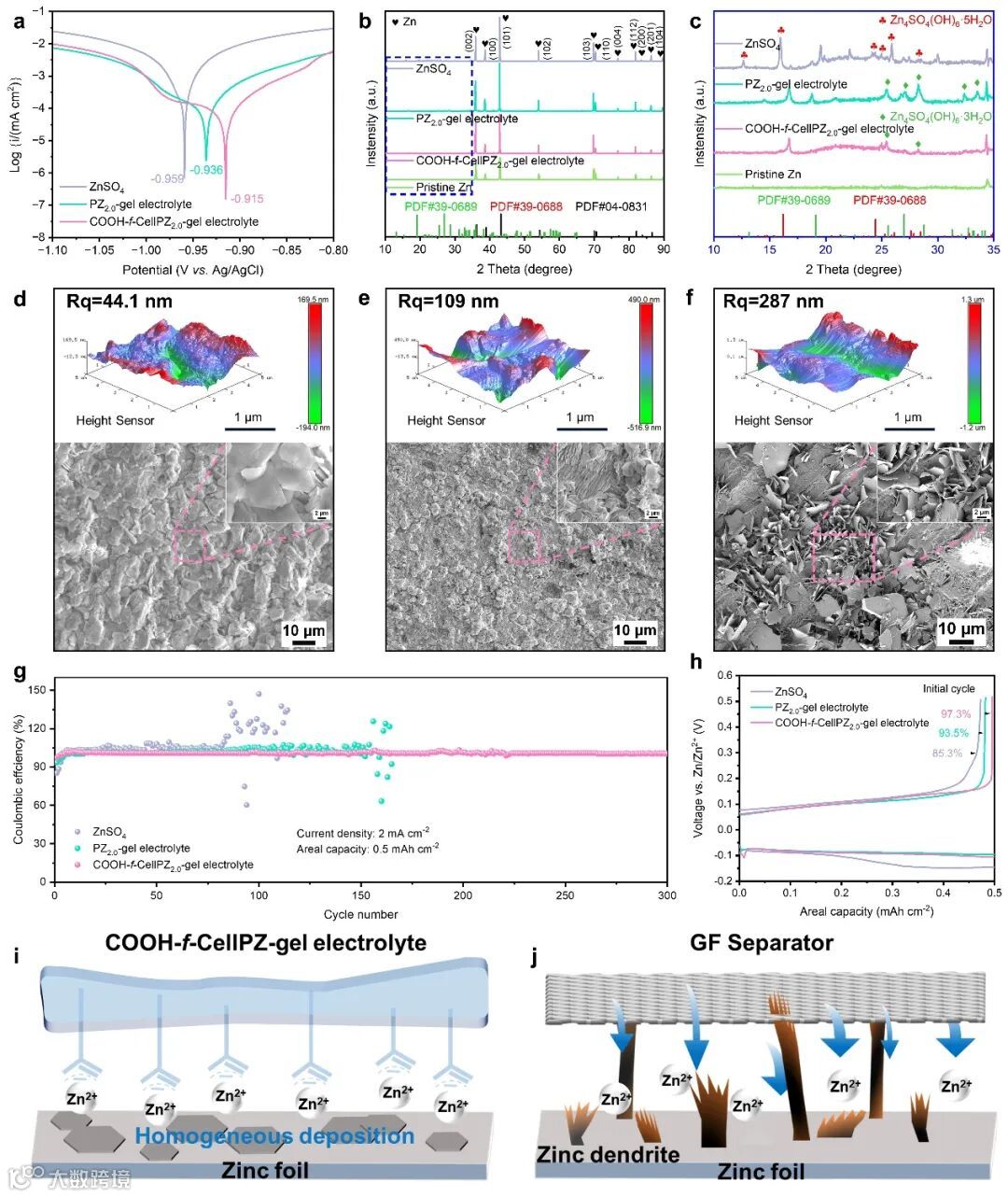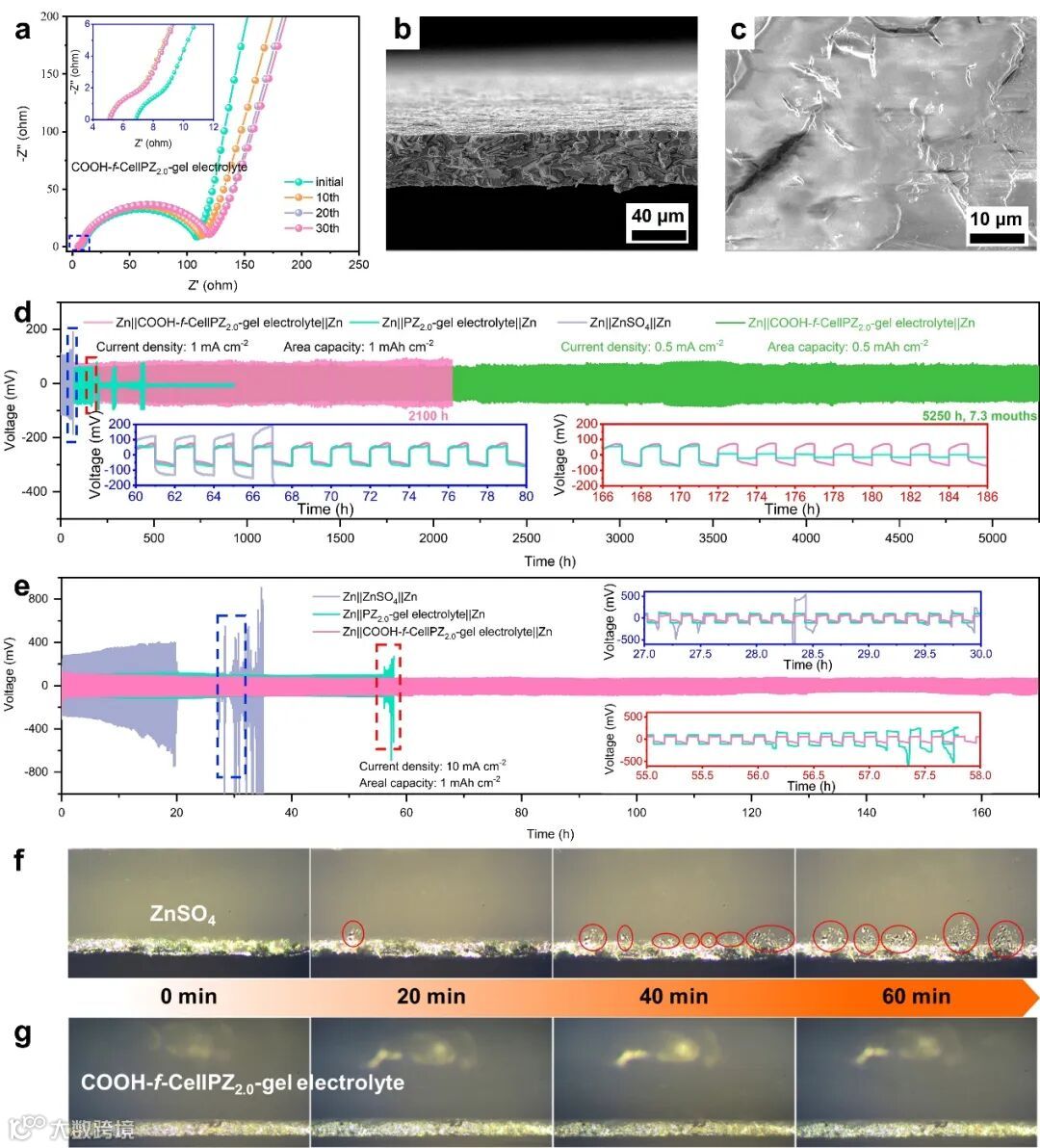 要点三:COOH-f-CellPZ-gel电解质实现长期稳定的锌阳极
