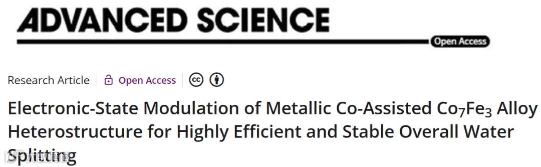 近日,黑龙江大学化学化工与材料学院的邹金龙教授和王瑞红教授在国际知名期刊Advanced Science上发表题为“Electronic-State Modulation of Metallic Co-Assisted Co7Fe3 Alloy Heterostructure for Highly Efficient and Stable Overall Water Splitting”的观点文章。