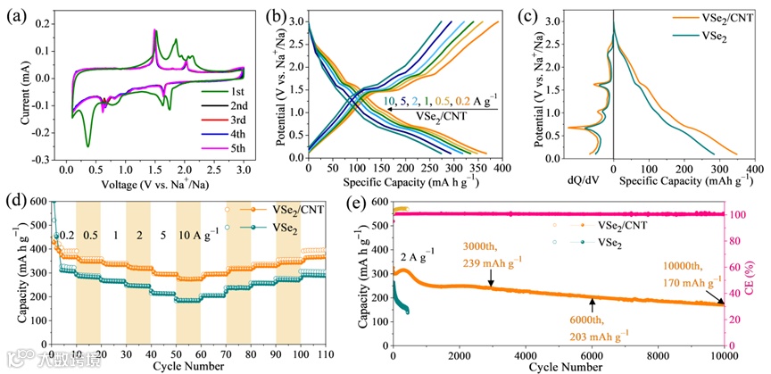 要点一:VSe2/CNT负极钠离子电池性能分析
