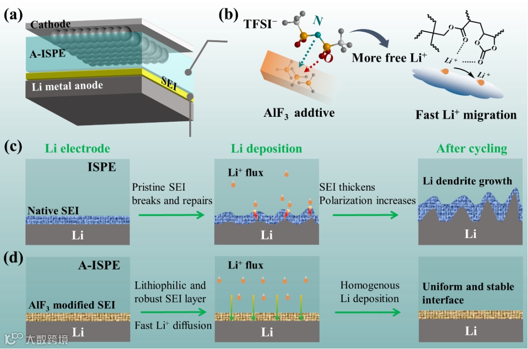 图1. 路易斯酸含氟添加剂AlF3在应用半固态电解质的锂金属电池中的双重功能