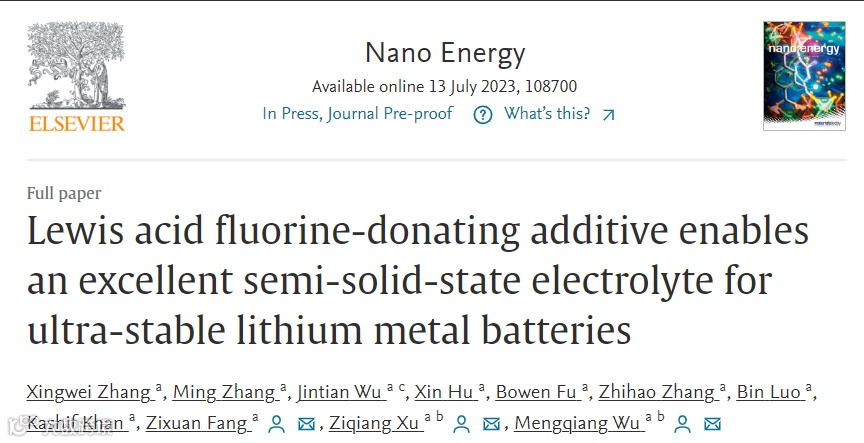 路易斯酸供氟添加剂实现优异的半固态电解质应用于超稳定锂金属电池