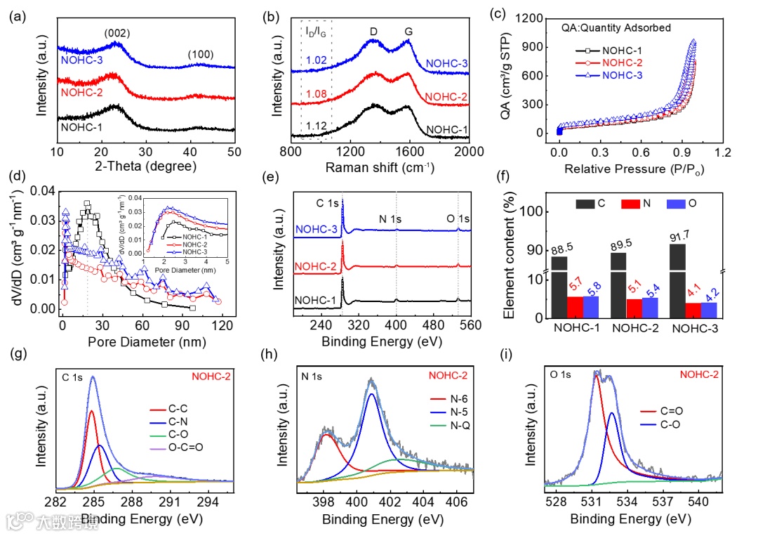 基于此,河南大学物理与电子学院白莹教授团队,在国际知名期刊Chemical Engineering Journal上发表题为“Three-dimensional N/O co-doped hard carbon anode enabled superior stabilities for sodium-ion batteries”的研究文章。本文第一作者为河南大学2021级硕士生宋振齐,白莹教授和陈素华博士为论文共同通讯作者。该工作研究了一种N/O共掺杂三维多孔硬碳材料(NOHCs),杂原子的引入能调节硬碳微晶中的层间距及表面活性位点。