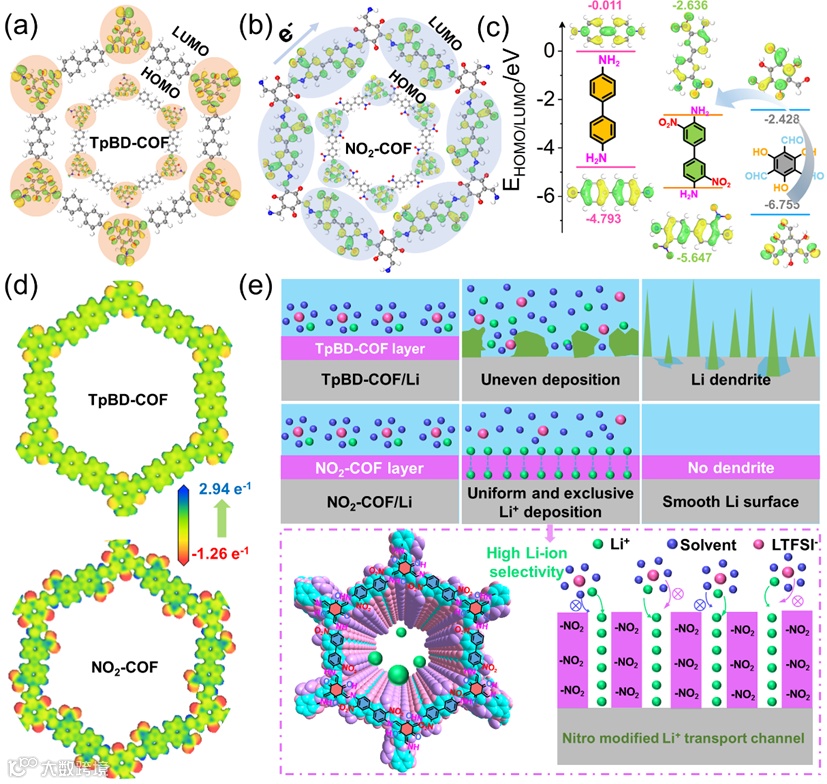通过强吸电子硝基调控共价有机框架的电子结构以构建出特定的锂离子取向通道