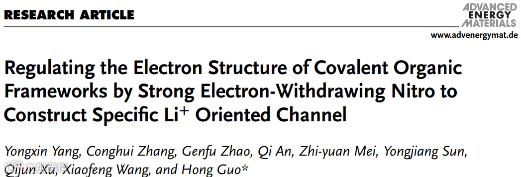 近日,云南大学郭洪教授团队在国际知名期刊Advanced Energy Materials上发表题为 “Regulating the Electron Structure of Covalent Organic Frameworks by Strong Electron-Withdrawing Nitro to Construct Specific Li+ Oriented Channel的研究型论文。