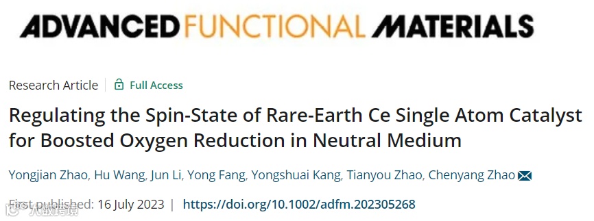 调节稀土Ce单原子催化剂的自旋态增强中性氧还原