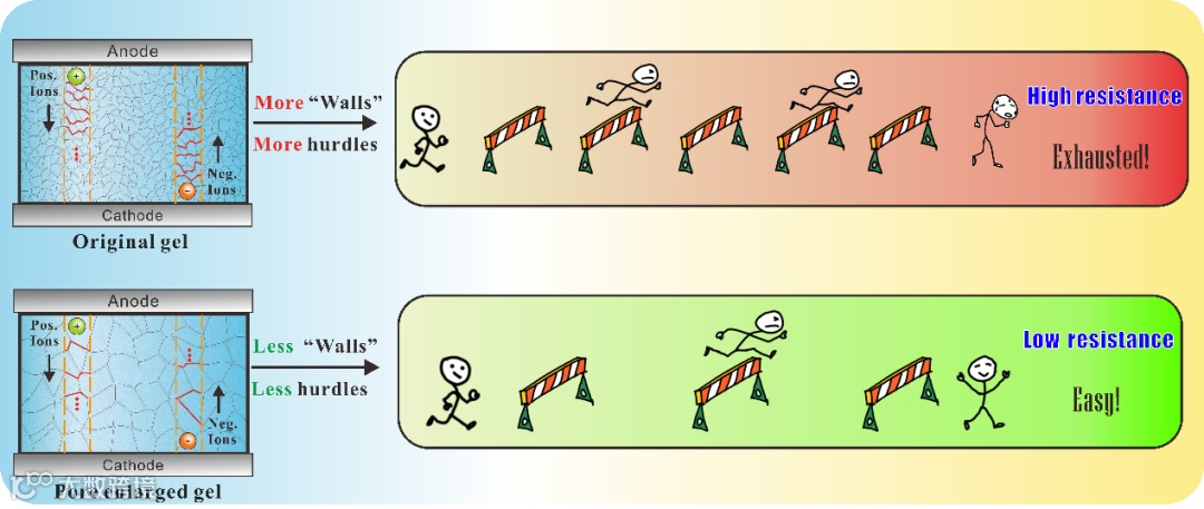 图1. 凝胶扩孔降低内阻机理