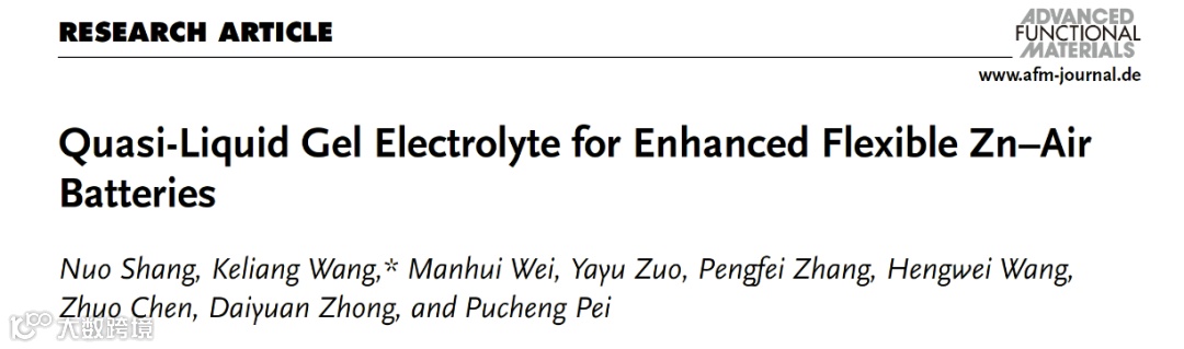 近日,来自北京理工大学的副教授王克亮在国际知名期刊Advanced Functional Materials上发表题为“Quasi-liquid gel electrolyte for enhanced flexible Zn-air batteries”的研究论文。