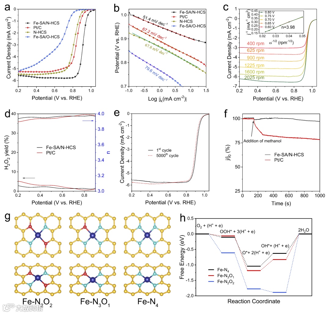 图2. Fe-SA/N-HCS的电催化氧化原性能评估。