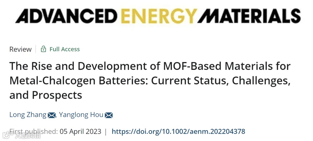 基于此,北京科技大学张隆副教授联合北京大学侯仰龙教授在国际顶级期刊Advanced Energy Materials上发表题为“The Rise and Development of MOF-Based Materials for Metal-Chalcogen Batteries: Current Status, Challenges, and Prospects”的综述文章。