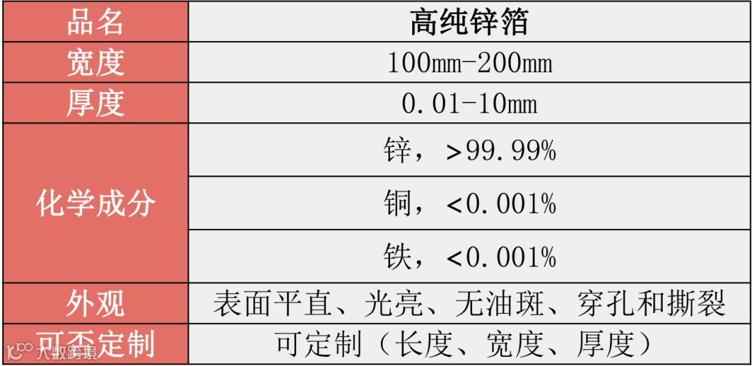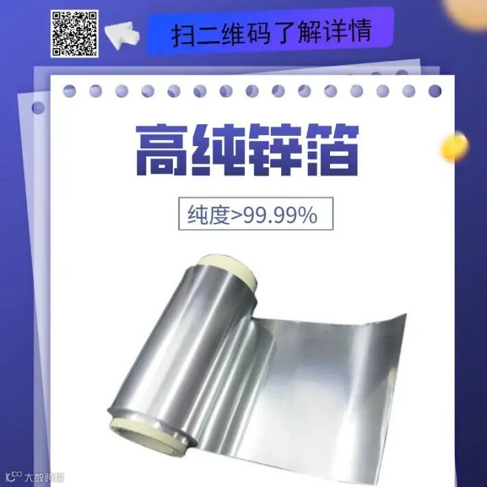 高纯锌箔由于其优异的导电性、耐腐蚀性和可塑性,被广泛应用于电池制造、电化学实验、电子材料和防腐蚀等领域。
