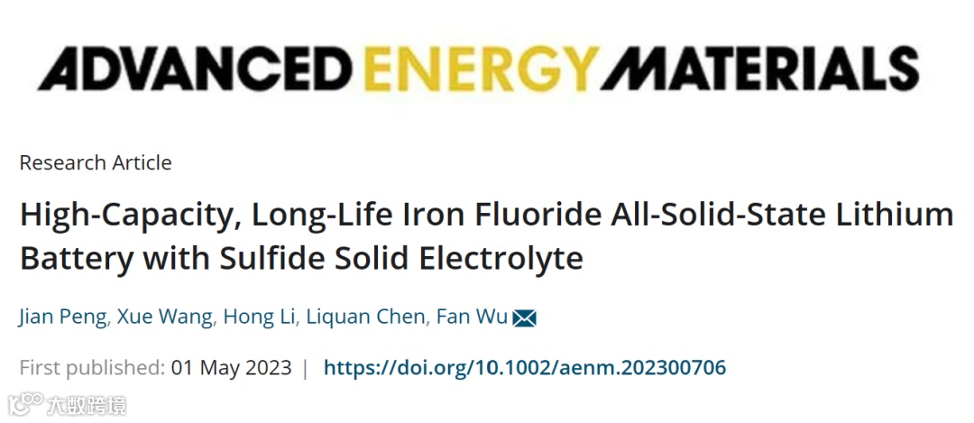 2. High-Capacity, Long-Life Iron Fluoride All-Solid-State Lithium Battery with Sulfide Solid Electrolyte. J. Peng ,X. Wang, L. Chen, H. Li, F. Wu*. Advanced Energy Materials (IF=29.698), 2023, 2300706.