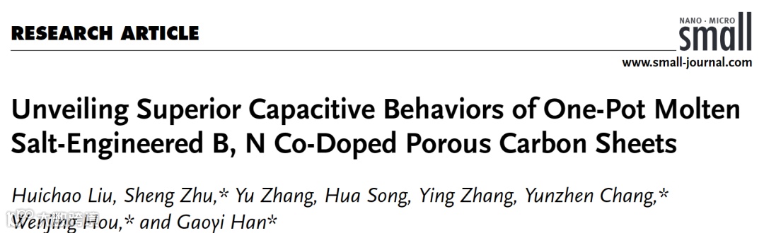 揭示一锅熔盐法构筑的B, N共掺杂多孔碳片的优异电容性能