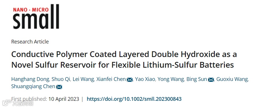 基于此,上海大学陈双强教授与悉尼科技大学孙兵研究员、成都理工大学陈显飞研究员合作,在Small上发表题为“Conductive Polymer Coated Layered Double Hydroxide as a Novel Sulfur Reservoir for Flexible Lithium-Sulfur Batteries”的研究论文。该工作提出了空心层状双氢氧化物(LDH)上涂覆聚吡咯(PPy)薄膜合成了一种新型储硫层(PPy@LDH)。